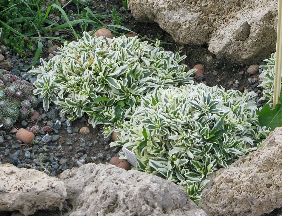 Рассада арабиса Variegata (Вариегата) имеет необычный окрас листочков. Они светло-зеленые в белую полосочку. Формируются они тоже не привычно для нас. Листочки рассады арабиса Variegata образовывают розеточку. Весной сверху появляются пучки-бутоныю. Сначала они закрыты, а потом распускаются фиолетовым цветом. Позже цветочки становятся белыми. Они имеют вытянутую форму и в длину могут достигать от 5 до 10 см. Несмотря на непривычную форму, они имеют сильный аромат. Вообще из семян арабиса Variegata вырастает почвопокровное многолетние растение. Высота «коврика», без учета величины цветочков, не превышает 5 см.