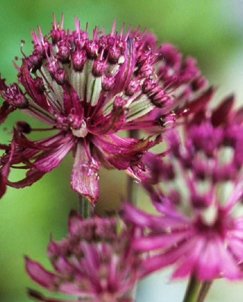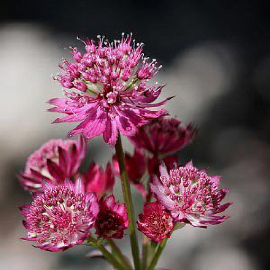 Саженцы Астранции Большой Примадонна (Primadonna) вырастут в красивое и компактное растение с прикорневой розеткой ярко-зеленой листвы, высотой до 60 сантиметров. В начале июля на стеблях раскрываются красивые бордово – сиреневые соцветия, похожие на многолучевую звезду с пышной приподнятой серединкой. Цветущая астранция долго сохраняет декоративность, ее используют для букета, в том числе и сухого.