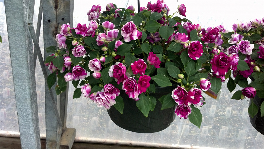 Рассада Бальзамина (Импатиенс) Уоллера Фиеста Бонита Парпл Страйп (Fiesta Bonita Purple Stripe) предназначена для высадки в цветник, выращивания в вазонах, кашпо. Главное достоинство сорта – обильное и продолжительное цветение. Уже в июне на кустиках раскрываются первые махровые бутоны. Шелковистые лепестки окрашены ярко, в белый и вишнево-красный цвет. Цветение длится до 6 месяцев в домашних условиях, в открытом грунте – до первых заморозков.