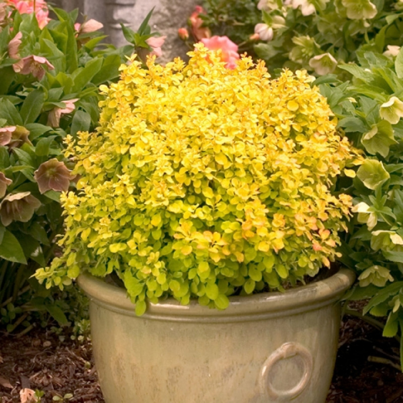 Саженцы барбариса Тини Голд (Tiny Gold) прекрасно впишутся в любой участок сада и дадут красивый компактный куст (до полуметра высотой) с ярко – желтой листвой. Цветут мелкими желтыми непримечательными цветочками. В плодоношении яркие с красивыми красными плодами. Крупномер кустарника любит солнечные места, не переувлажненные почвы.