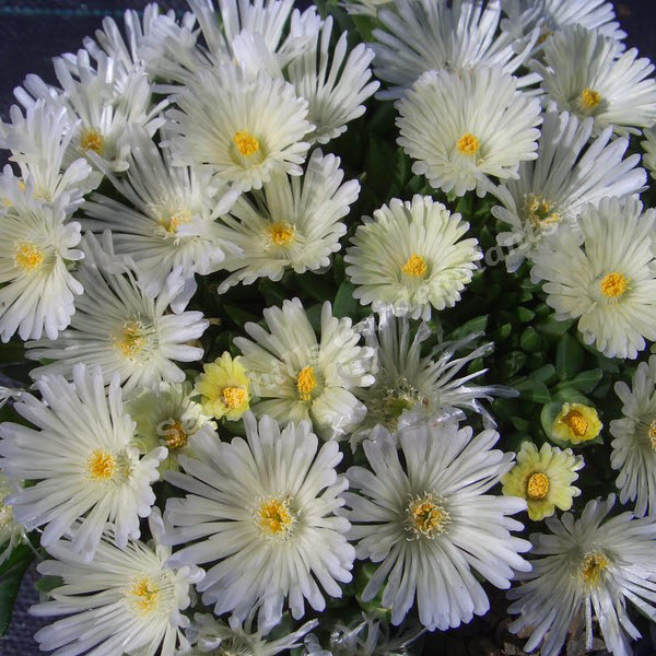 Саженцы делоспермы скрученной Альба (Alba) пользуются огромной популярностью у любителей альпийских горок и рокариев, так как они идеально подходят для украшения этих садовых объектов. Компактное растение неприхотливо в уходе и обладает устойчивостью к засухе, но, чтобы создать для него подходящие условия, необходимо перед посадкой организовать хороший дренаж. В начале лета среди сочной зеленой листвы распускаются многочисленные цветы с белыми лепестками. Цветение длится до наступления осенних заморозков, в это же время листва меняет цвет и становится темно-бордовой.