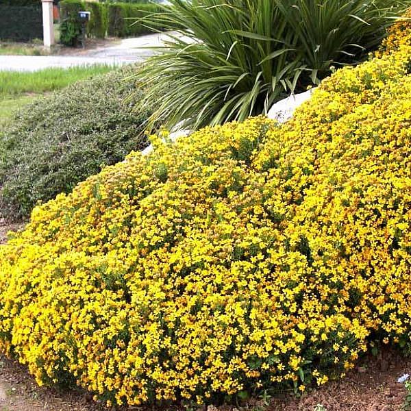 Рассада дрока Роял Голд (Royal Gold) вырастает карликовым кустиком около 50 см в высоту с пышной, ветвистой кроной. Листики простые, тройчатые, среднего размера и зеленого окраса. Цветет небольшими, желто-золотистыми цветочками, которые обильно и густо покрывают ветви. Достоинства дрока Роял Голд: - компактный вид кустика - неприхотлив в уходе - зимоустойчив Семена дрока Роял Голд лучше сажать на солнечных местах с рыхлой, дренированной почвой. Поливать нужно умеренно и регулярно, особенно в жаркую погоду. Применяются для различных цветочных композиций и вдоль бордюров, дорожек.