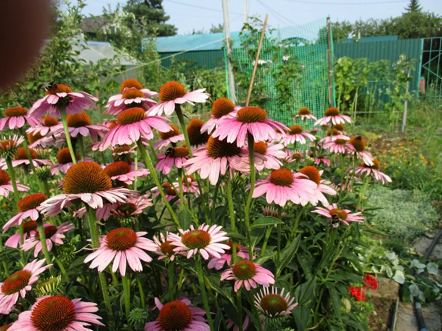 Эхинацея пурпурная Ливадия - это великолепное растение, которое поразит вас своей красотой и изысканностью. Ее стебель прочный и прямой, достигает высоты до 100 см, а диаметр цветка может достигать 75 см. Цветки этого сорта эхинацеи меняют оттенок от розового до коричневого, создавая неповторимую атмосферу загадочности и утонченности.