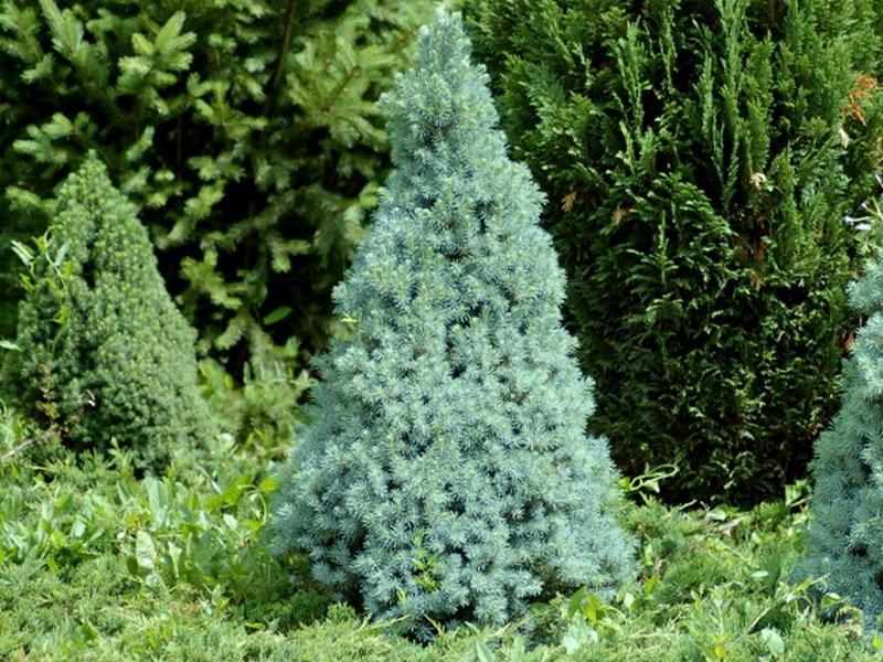 Саженцы Ели канадской Сандерс Блю (Sander's Blue) – карликовое медленнорастущее дерево пирамидальной формы с кроной нежно-голубого окраса. За первые 10 лет вырастает на 70-80 сантиметров в высоту, а позже может вырасти до 300 сантиметров в длину и 200 сантиметров в ширину. Побеги плотно прилегают к стволу. Ель канадской Сандерс Блю имеет густую, красивую хвою. Дерево хорошо растет на освещенном месте и в полутени. Предпочтительна плодородная влажная почва без застоя влаги. Требует полива в засушливый период. Ель можно использовать в одиночной и групповой композиции. Растение прекрасно подходит как универсальное украшение сада.
