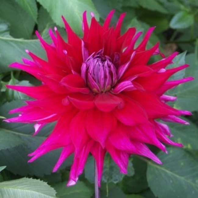 Саженцы и рассада георгины декоративной Джокондо (Dahlia cultorum) относятся к самым крупным сортам, с цветами размером до 25 см. Их окрас пурпурный, иногда красный, встречается и фиолетовый, густо насыщенный. Лепестки крупные, широкие у основания, сужающиеся к концам.