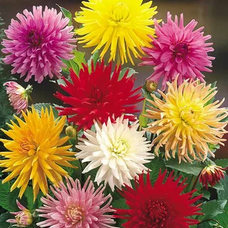 Георгина Кактус Фловеред Микс - это удивительное растение с разнообразной окраской цветков, которое поразит вас своей красотой и изяществом. Сорт flowered mix представляет собой настоящее произведение искусства природы, сочетающее в себе яркие оттенки и неповторимые формы. Высота растения может достигать до 130 см, что делает его заметным акцентом в вашем саду или огороде.