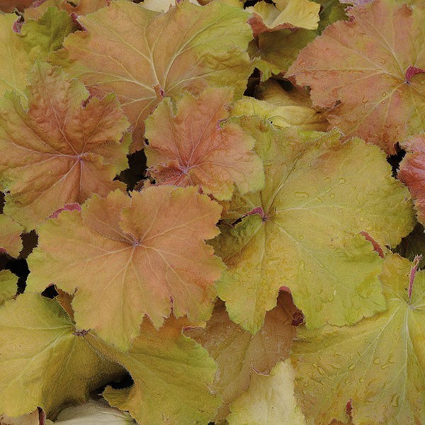 Гейхера гибридная биг топ голд - это удивительное растение с яркой и привлекательной листвой. Ее листья имеют оранжево-зеленую окраску сверху и розово-красную с нижней стороны, создавая неповторимый вид в любом саду. Этот сорт гейхеры отличается высотой до 35 см и диаметром до 35 см, что делает его идеальным выбором для групповых посадок или одиночных композиций.