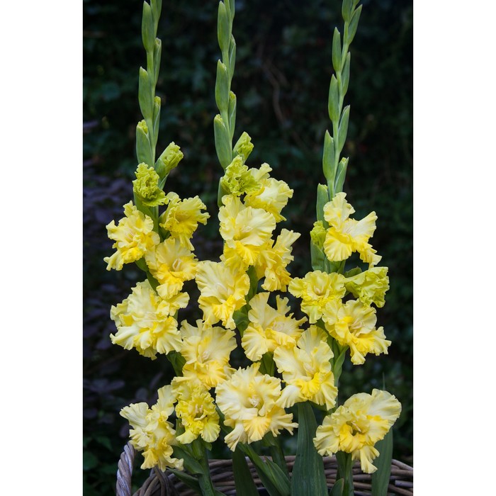 Луковицы гладиолуса гибридного Lemon Frizzle высаживают в лунки в конце апреля – мае. Мощное, высокое растение любит солнечные участки и почву умеренной влажности. Участки, на которых есть сквозняки, стоит избегать. Гладиолус гибридный Lemon Frizzle — это необычайно красивый сорт, характеризующийся лимонно-желтой окраской. Цветки с густо жатым краем. В полном роспуске цветы лимонные, а полураспустившиеся бутоны более салатовые. На растении одновременно раскрывается до 7-8 бутонов. Размер цветка 12-15 см. Цветение приходится на июль-сентябрь.