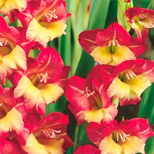 Луковицы гладиолуса гибридного Vasto порадуют необычной яркой окраской цветов, из которых получаются роскошные букеты. Высота взрослого растения варьируется от 50 до 60 сантиметров. На крепких стеблях формируется около 10-15 цветов, состоящих из желтых и красных лепестков. Это растение отлично смотрится в составе смешанных и групповых посадок. Высаживая луковицы гладиолуса гибридного Vasto, следует выбирать места с хорошим освещением, но легкой полутенью. Это гарантирует длительное цветение. Также важна защита от сквозного ветра, который может сломать цветоносы.
