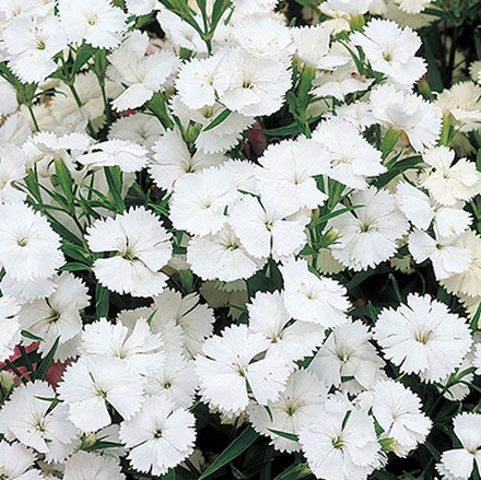 Гвоздика Diana White - это изысканное растение с белоснежными цветками, которые радуют глаз своей красотой. Ее стебель достигает высоты 15-20 см, что делает ее идеальным выбором для групповых посадок. Листья гвоздики имеют форму, напоминающую стрелу, что добавляет этому растению особый шарм.