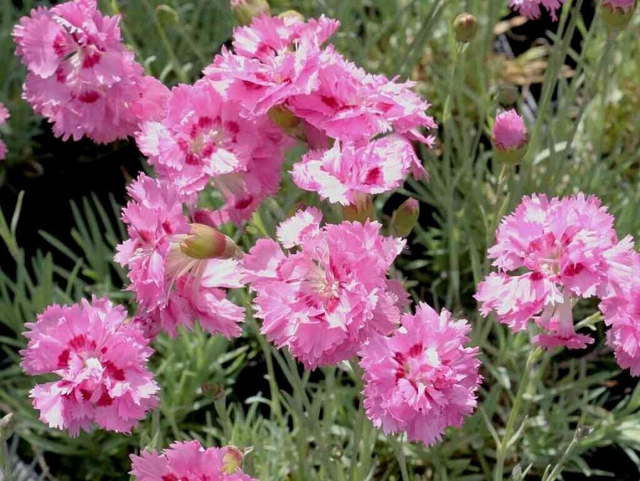 Рассада гвоздики «Мегги» (Maggie) относится к многолетним декоративным сортам. Хорошо разрастается на солнечных участках. Перед высевом семян гвоздики «Мегги» почву желательно дренировать и удобрить. Высота взрослого растения – от 15 до 20 см. Особого ухода рассада гвоздики «Мегги» не требует. Она устойчива к засухе и сильным морозам. Цветение длится с июня по июль. В этот период на кустике распускают нежно-розовые цветочки, которые обильно располагаются на кусте. Края лепесточков имеют зубчики. От этого цветы кажутся махровыми и пушистыми. Листочки очень тонкие и длинные, сизого оттенка.