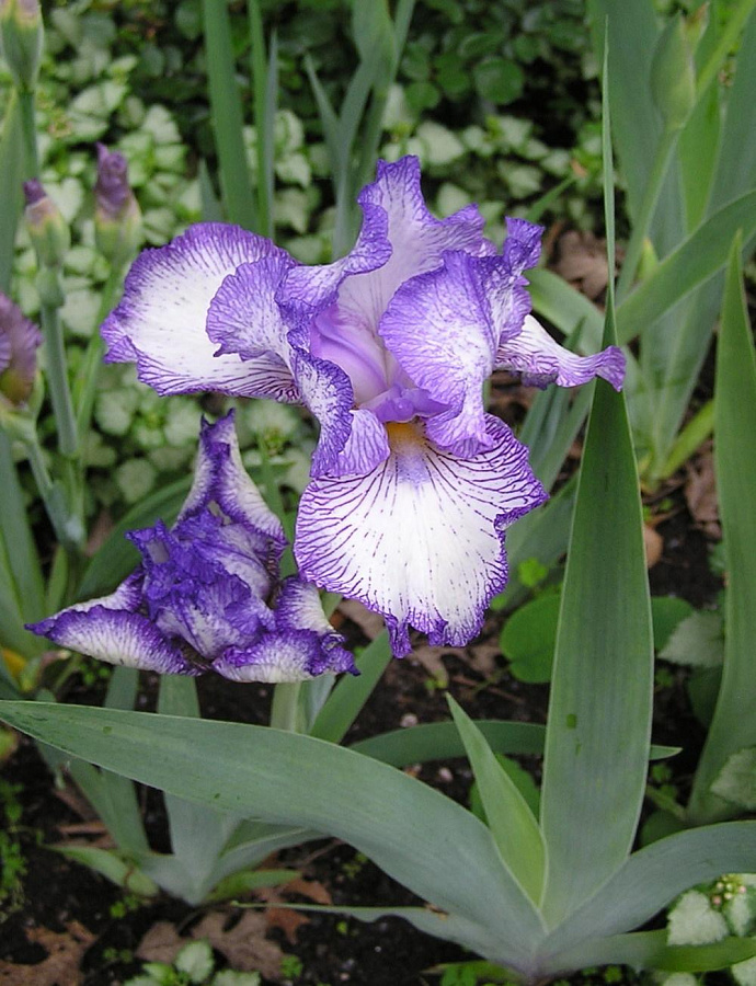 Рассада Ириса Осенний Цирк (Autumn Circus) – невероятно красивое, завораживающее украшение клумбы, которое манит и притягивает. Основа композиции – нежный цветок с гофрированными белыми, декорированными сиреневой каёмочкой лепестками. Период цветения припадает на июнь, повторно может зацвести в сентябре. Особенности выращивания: