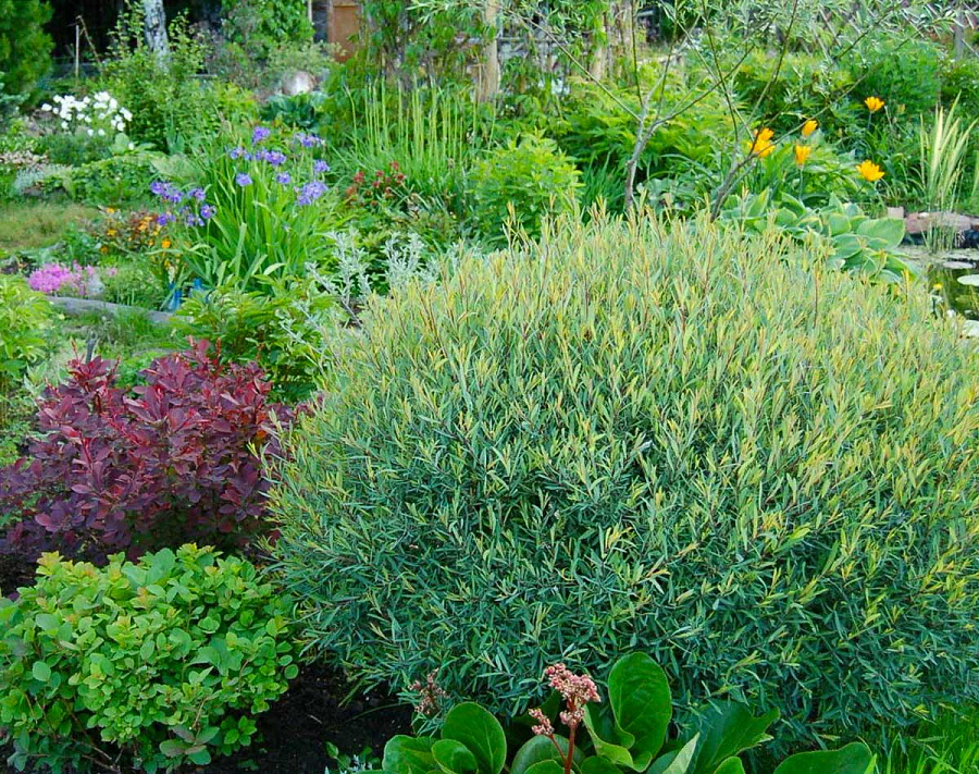 Саженцы ивы пурпурной Нана (Nana) вырастают в небольшой полутораметровый кустарник полушаровидной формы. Наибольшую декоративность представляет серебристо-зеленая листва. Цветение наступает в мае, но ничем непримечательное. Сорт отличается зимостойкостью и засухоустойчивостью. Для посадки лучше выбирать хорошо освещенные места, иначе крона будет редкой и мене привлекательной. Ива пурпурная Нана используется для укрепления береговых линий за счет сильно развитой корневой системы, прекрасна для создания живых изгородей и различных фигур на небольших участках.