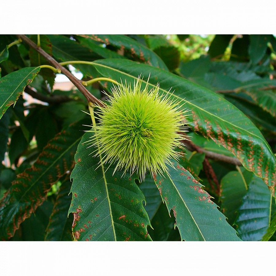Каштан съедобный (посевной) - это великолепное дерево, которое порадует вас своими вкусными плодами и красивой листвой. Его ствол прочный и устойчивый, а размеры растения достигают от 200 до 350 см в высоту. Листья каштана зеленые, создавая уют и прохладу в вашем саду.