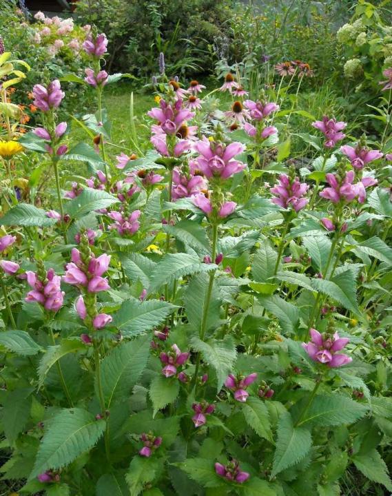 Одно из главных достоинств растения – неприхотливость. Родина цветка Хелоне – Канада, там оно растёт на влажных лугах и светлых опушках лиственных лесов. Попав в Россию, в районы с умеренным климатом, чувствует себя как дома и особого ухода не требует. Произрастает в тенистых и влажных местах, обычно близ водоемов, рек и прудов. Прекрасно себя чувствует как в тени, так и на солнце. Рассада Хелоне косой зацветает ранней осенью, цветет до первого снега, а иногда и в оттепель. Соцветия колосовидные, группируются на верхушках побегов, цветы небольшие - 1,5 см, в форме пузыря. Листья блестящие,темно-зеленые,имеют резную форму с ярко выраженными прожилками. Особенности: