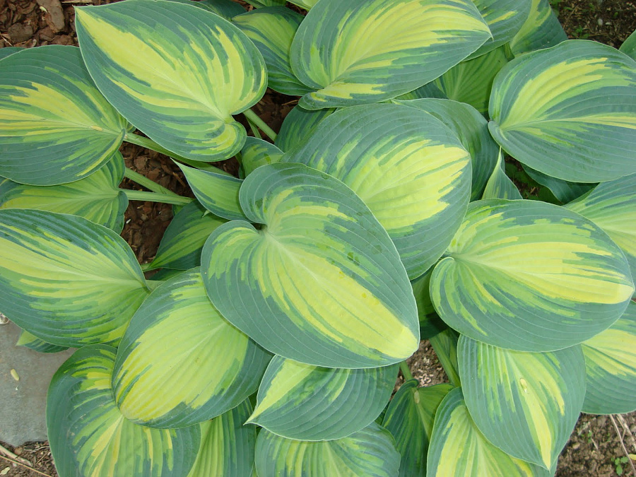Саженцы хосты гибридной Бич Бой (Beach Boy) Такое растение само по себе смотрится ярко и оригинально, так же будет смотаться гармонично в композиции с другими растениями. Темно сине - зеленый лист с желтыми центром, на солнце становиться молочного цвета. Распускается в июле белыми цветами. Характерные особенности растения:
