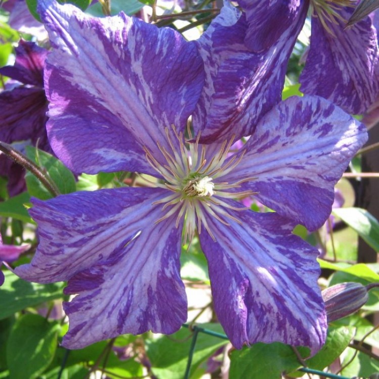 Клематис гибридный Тай Дай (Tie Dye) отличается оригинальным окрасом цветка и быстротой наращивания вегетативной массы. Цепляясь за рядом расположенные объекты, лиана способна подняться на высоту до 300-350 см. За сезон растение способно обвить арку или беседку. С июня по сентябрь распускаются цветки мраморного окраса, светло-фиолетовые с белыми и лавандовыми штрихами, достигающие в диаметре 10-12 см. Для клематиса гибридного Тай Дай (Tie Dye) лучшим местом посадки будет рядом с ограждениями, беседками, перголами, на солнце или в полутени, главное чтобы саженцы были защищены от ветра и сквозняков.