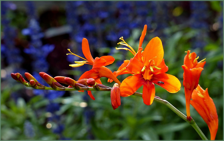 Рассада крокосмии "Огненный король" (Fire King) vможно высаживать как отдельно, так и группами в сборном цветнике. Растение светолюбиво, цветет обильно и долго на солнечных места. Поэтому высаживают рассаду крокосмии "Огненный король" преимущественно на хорошо освещенные участки, неплохо может подойти и условия легкой тени. Цветение длится с середины лета до осени. Цветочки окрашены в ярко-красный цвет. Они пригодны для засушки и использования в сухих букетах. Высота кустарника около 60 см.