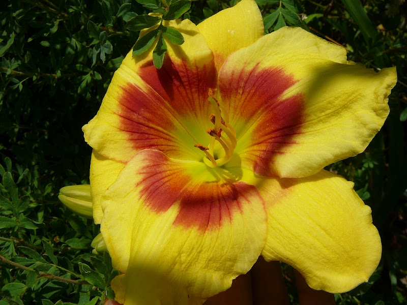 Окраска цветка : Золотисто-желтая с красным глазком, салатовым горлом