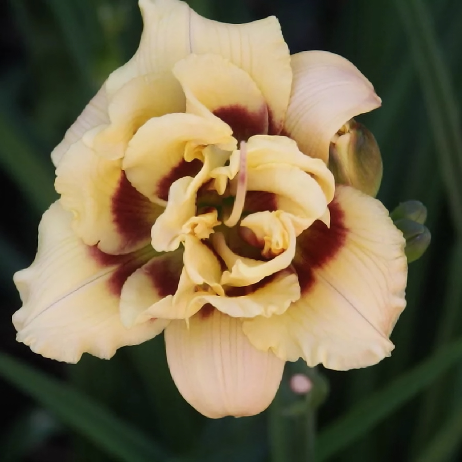 • Окраска цветка : кремово-жёлтый с бордовым глазком и зелёным горлом