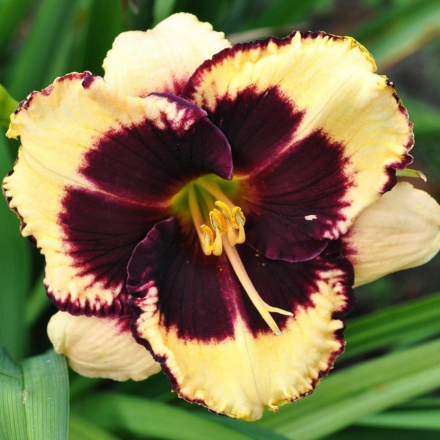 Окраска цветка : Кремово-жёлтая с большим тёмно-бордовым центром и каймой