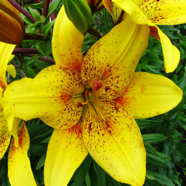 Окраска цветка : цветок желтый с темно-коричневым частым крапом