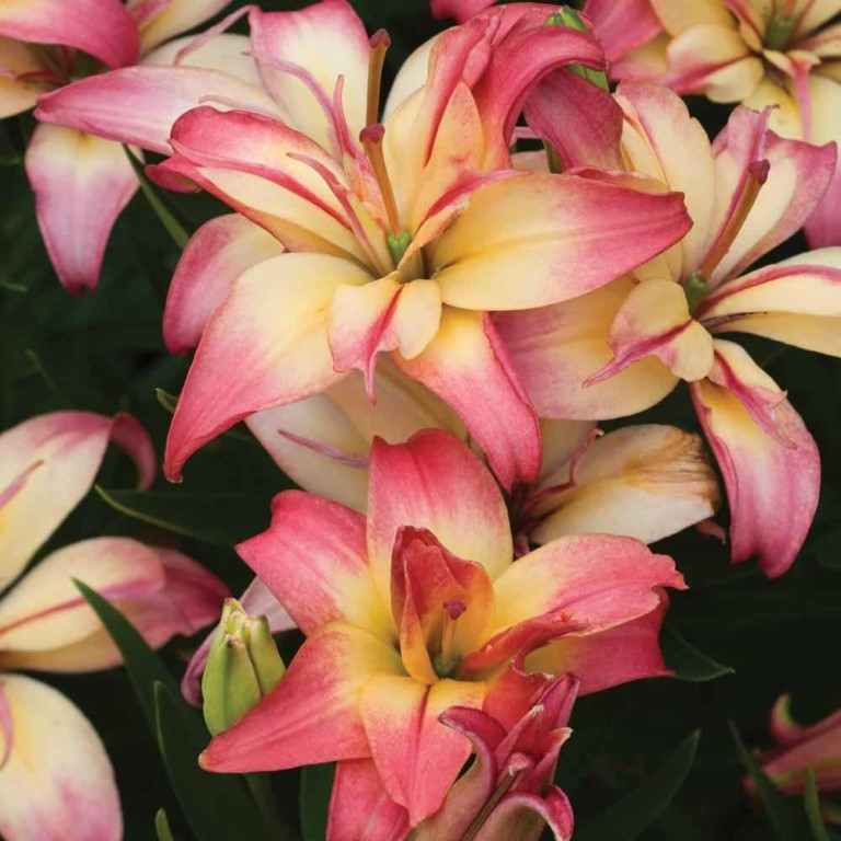 Луковицы лилии азиатской махровой Дабл Трабл в период цветения поразят даже «видавших виды» цветоводов. Несмотря на то, что азиатские махровые гибриды являются самым многочисленным разделом, этот сорт отличается от всех лилий. Растение достаточно высокорослое, выпускает цветонос, достигающий в высоту 110 сантиметров. Но само очарование раскрывается вместе с появлением цветков. Махровые, в диаметре около 19 сантиметров, они имеют нежный пастельно-розовый оттенок и кремово-желтый центр. Причем цветки держатся достаточно долго и прекрасно чувствуют себя в срезе. Дабл Трабл неприхотлива, отличается высокой морозостойкостью.