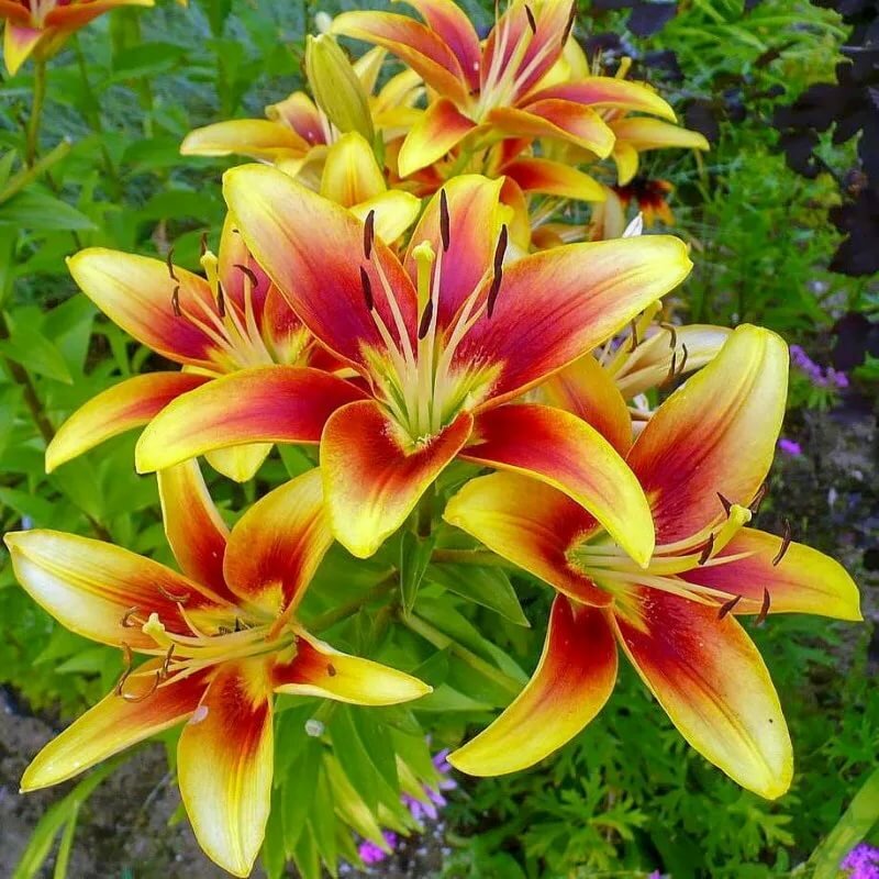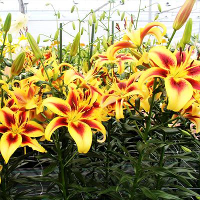 Луковицы лилии ОА-гибрид Вива ла Вида в период цветения поразят обилием ярких красок и, пожалуй, одними из самых крупных в сортовой серии цветами, которые в диаметре достигают 20 сантиметров. Таким контрастным сочетанием оттенков может «похвастаться» далеко не каждая лилия, поэтому Вива ла Вида просто обязана стать главным украшением вашего участка. У цветка лепестки лимонно-желтого-цвета с бордовой серединой, более светлыми краями и крапом в центре. При этом на одном цветоносе высотой около 110 сантиметров может распускаться сразу до семи таких красавиц. Цветонос отлично стоит в срезе.