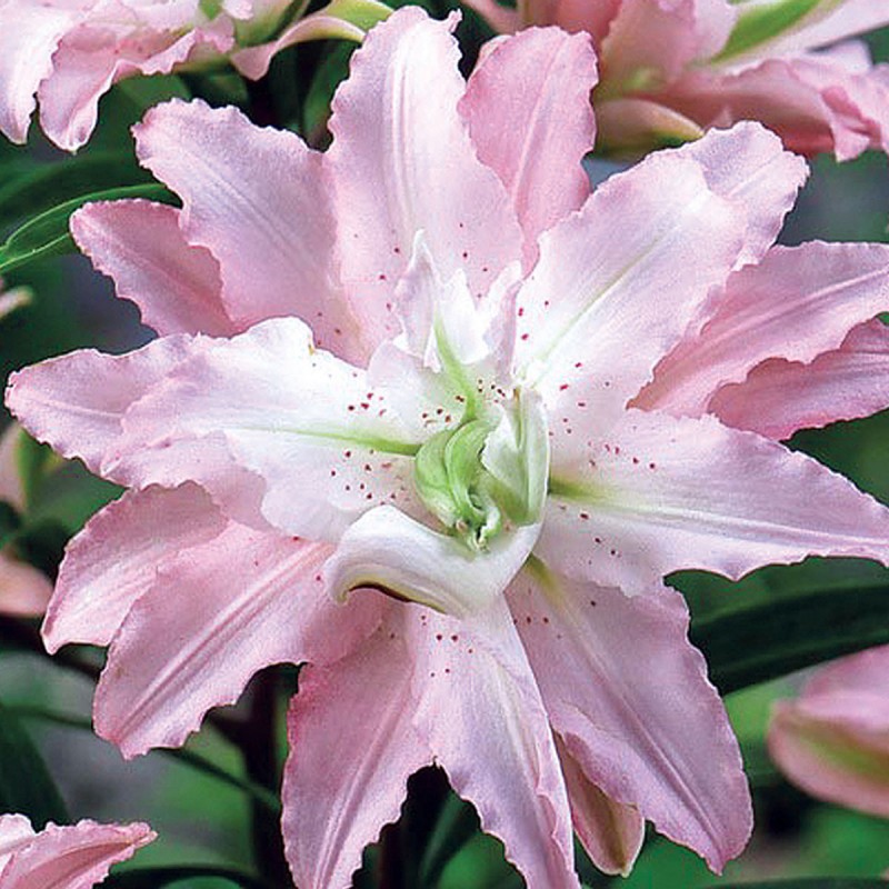 Луковицы лилии Soft Music рекомендуют размещать на солнечных участках с легкой, питательной хорошо дренированной почвой. В уходе культуре необходим регулярный полив, прополка и рыхление. Сорт достаточно высокий, поэтому нуждается в опоре. Цветки махровые, белые со светло-розовой каймой и темными крапинками внутри, состоят из трех рядов гофрированных по краю лепестков. Диаметр раскрывшегося бутона достигает 15-20 см. Аромат лилии Soft Music очень приятный, тонкий. Используются многолетники преимущественно для посадки группами или вместе с другими сортами.