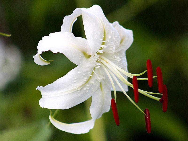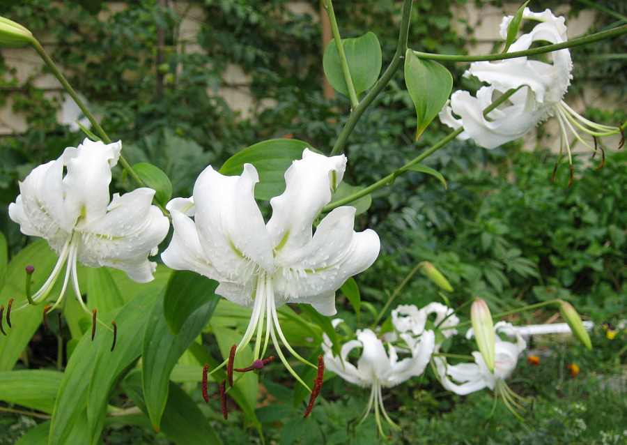 Саженцы и рассада лилии видовой Прекрасная Альбум (Lilium) с цветами чисто-белого цвета без вкраплений. Изгибы цветка оттеняет светло-зеленая полоса внутри лепестка и темные тычинки. Настоящая прекрасная королева сада завораживает изысканностью и благородностью. Благоухание можно почувствовать, еще не войдя в сад. Срезанные цветы способны сохранять этот аромат около 10 дней.
