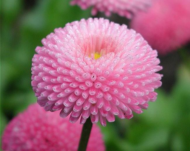 Семена маргаритки "Розовый Шар" сеют сразу на постоянное место в конце мая — июне. Первые всходы появляются через 6-12 дней. Пикировку проводят через месяц после посева, создавая расстояние между растениями до 15 см. Культура неприхотлива, нетребовательна к почве. В засушливый период ее нужно поливать, иначе цветы мельчают. Высота взрослого кустика всего 15 см. Цветочки махровые, красивой розовой окраски. Чаще всего маргаритки "Розовый Шар" используют для оформления бордюров, одиночных посадок среди газона, выращивания в балконных ящиках и уличных вазонах.