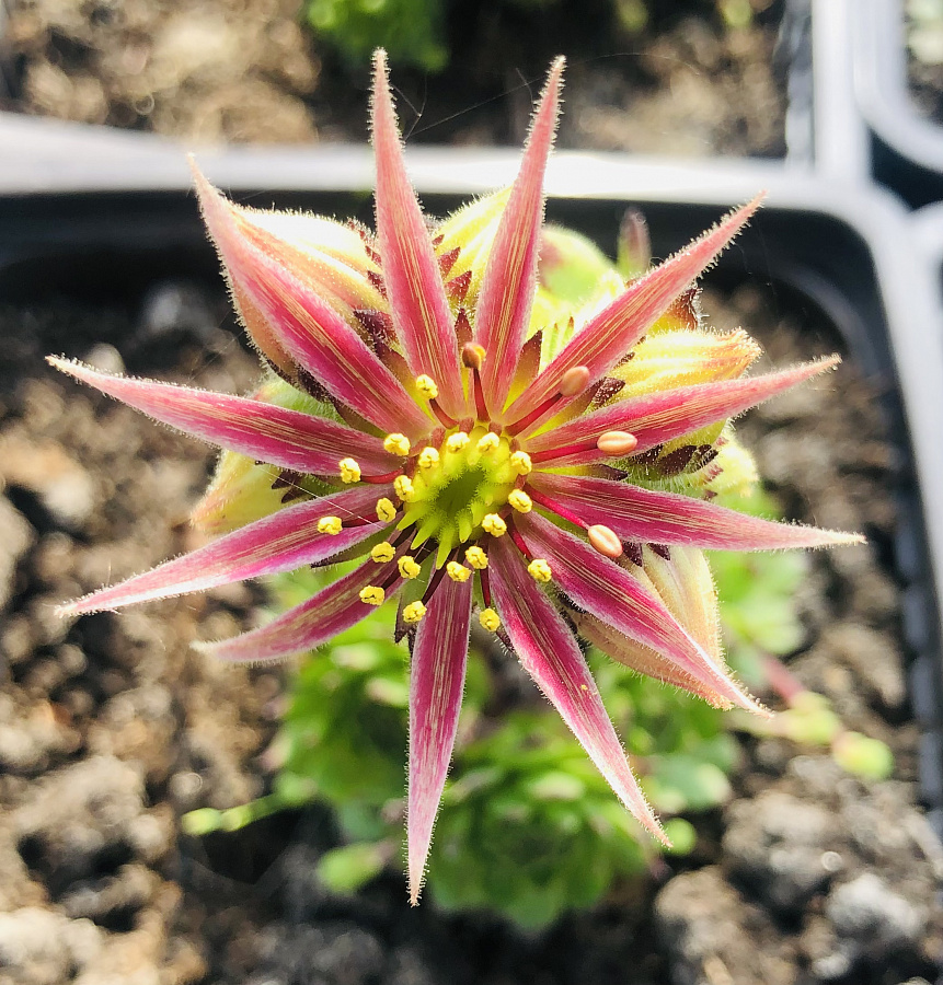 Саженцы молодила гибридного Faraon великолепно сочетаются с седумом, гвоздикой, камнеломкой и используют преимущественно для оформления рокариев, бордюров и альпийских горок. В высоту многолетник редко превышает 10-15 см. Это розеточное растение с толстыми листочками зеленого окраса и пурпурными заостренными кончиками. Цветет в июле — августе розовыми цветочками. Высаживают саженцы молодила гибридного Faraon в дренированную, плодородную почву на солнечные или частично затененные места. Застоя влаги растение не переносит, зато морозостойкое и засухоустойчивое.