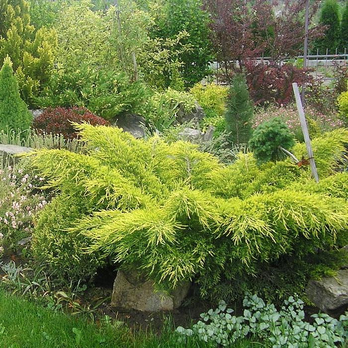 - крона сначала простирается, а затем приподнимается. Крупномеры Pfitzeriana используют для декорирования небольших садов и альпинариев.