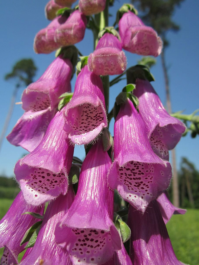 Рассада наперстянки Далматин Пепл (Dalmatian Purple) цветет в июне-июле светло-пурпурным цветом с темными крапинками внутри колокольчика. Цветение обильное и собрано в свечеподобную форму. Стебли массивные вырастают около 80-110 см в высоту. Листики продолговатые и имеют зеленоватый окрас. Достоинства наперстянки Далматин Пепл:
