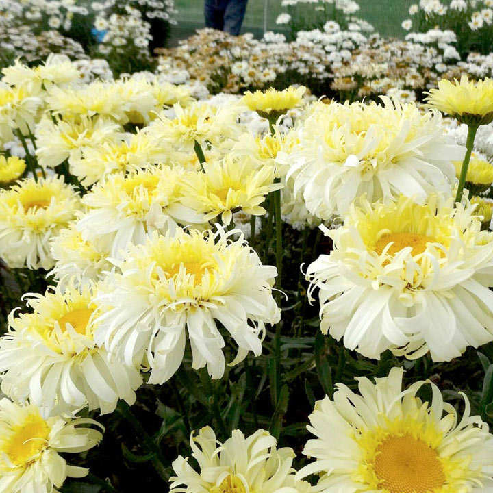 Саженцы нивяника (белинницы) наибольшего Реал Чамер (Real Charmer) позволят украсить сад крупными махровыми ромашками с ярко-желтыми серединками и кремово-белыми лепестками. Этот сорт отлично смотрится в одиночных посадках, а также в сочетании с декоративными травами и злаками. Для посадки рекомендовано выбирать участки, хорошо освещенные солнцем, в тени кусты теряют декоративность, цветы мельчают и их количество сокращается. При благоприятных условиях цветение длится до наступления осенних заморозков. Крепкие цветоносы можно срезать для составления нежных полевых букетов.