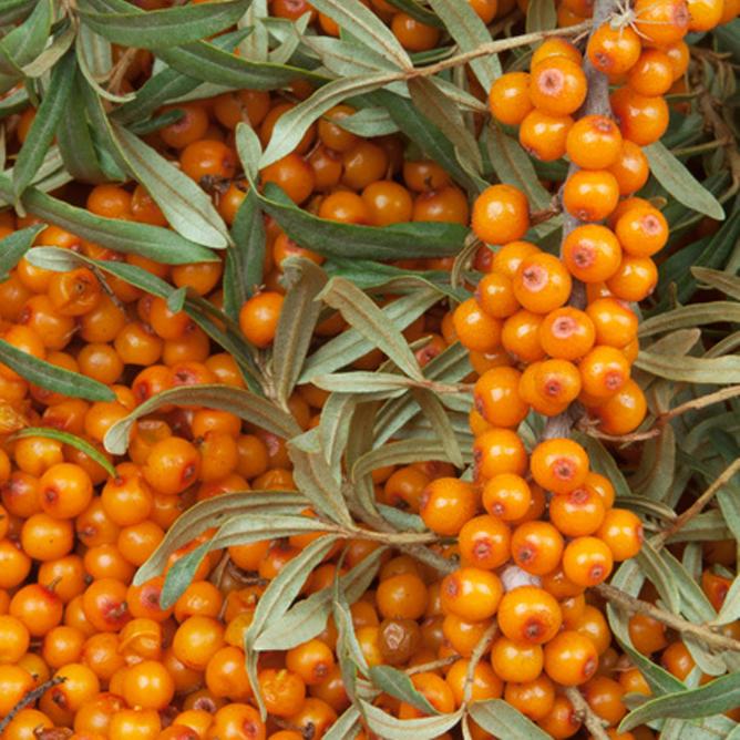Плоды облепихи Фругана созревают в августе-сентябре. Обладают округлой формой, ярким оранжевым цветом и собраны в плотные кисти.