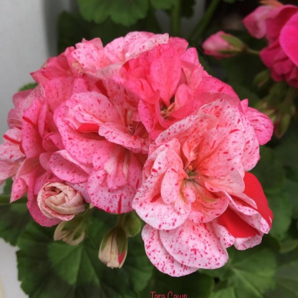 Пеларгония зональная "Дивас Распберри Риппл" - это настоящая звезда вашего сада! Ее красивые цветы красного цвета с белыми вкраплениями привлекут внимание всех соседей. Высота растения достигает 30-35 см, что делает его идеальным для групповых посадок. Летом листва становится насыщенно-зеленой, создавая яркий контраст с яркими цветами.