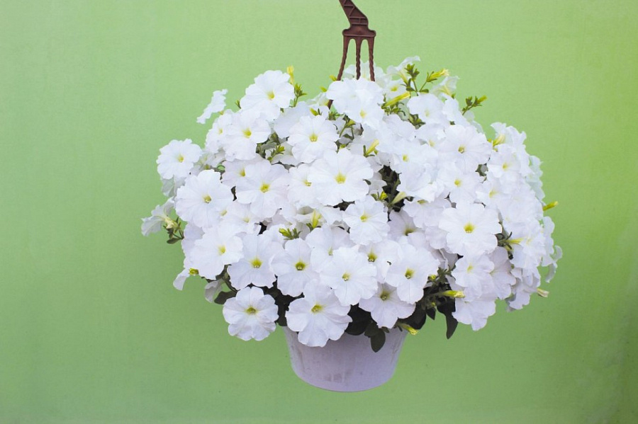 Листья петунии ампельной саксесс вайт имеют форму овала и придают ей особый шарм. Цветки этого сорта белые, что придает им нежность и элегантность. Петуния цветет в течение нескольких месяцев - с мая по июль, радуя глаз своими яркими бутонами.