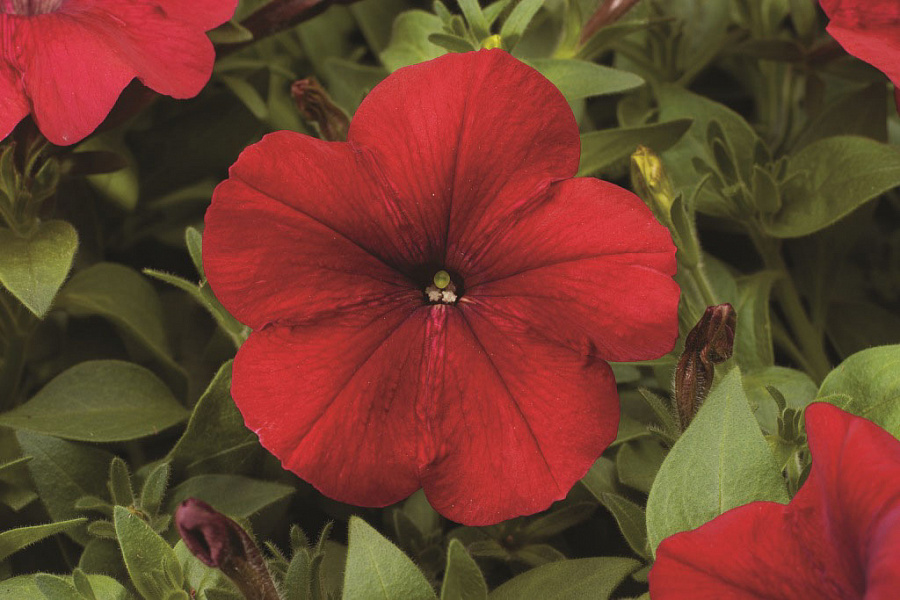 Петуния мультифлора ура ред - это великолепное растение с красивыми красными цветками, которые радуют глаз своей яркостью и изяществом. Ее стебель прочный и устойчивый, достигает высоты до 25-30 см, а диаметр цветка может достигать 7 см. Листья петунии имеют интересную форму и придают растению особый шарм.