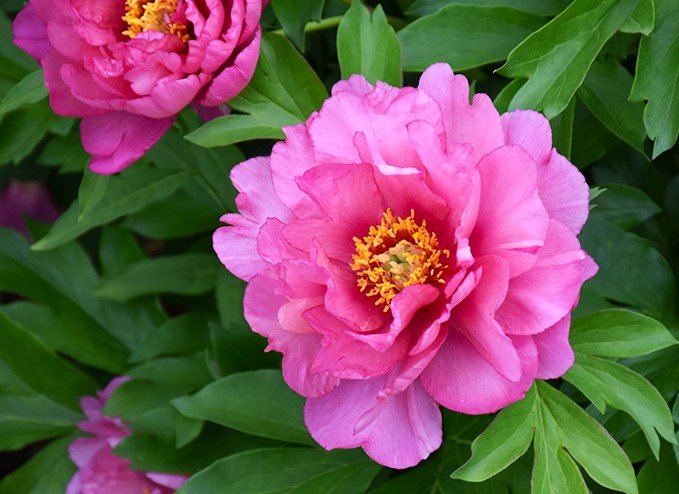 Саженцы пиона ИТО Pink Double Dandy (Пинк Даубл Денди) Сорт для романтичных натур, полумахровые пышные цветки раскрываются на длинных и начинают свою роскошную жизнь в лавандово-розовом ансамбле, постепенно переходя до глубокого, насыщенного розового. Иногда на одном цветке может отображать оба оттенка одновременно. Серединка цветка красивого золотистого цвета. Листва также преображается в течение сезона, сначала глянцево-зеленой оттенок, после становиться медно-бордового цвета— настоящая находка в ландшафте! Бутоны распускаются постепенно: сначала верхушечные, а затем боковые. Благодаря этому взрослые кусты отличаются продолжительным цветением. Саженцы пиона ИТО образуют привлекательные плотные, аккуратные округлые кусты с крепкими стеблями и узкими, темно-зелёной листвой, которая остается зеленой до осени. ИТО-пионы - это уникальные сорта, полученные путем скрещивания травянистых и древовидных пионов. Им присущи лучшие качества обеих групп: многолетники выносливы и устойчивы к жаре и влажности. Характерные особенности растения: