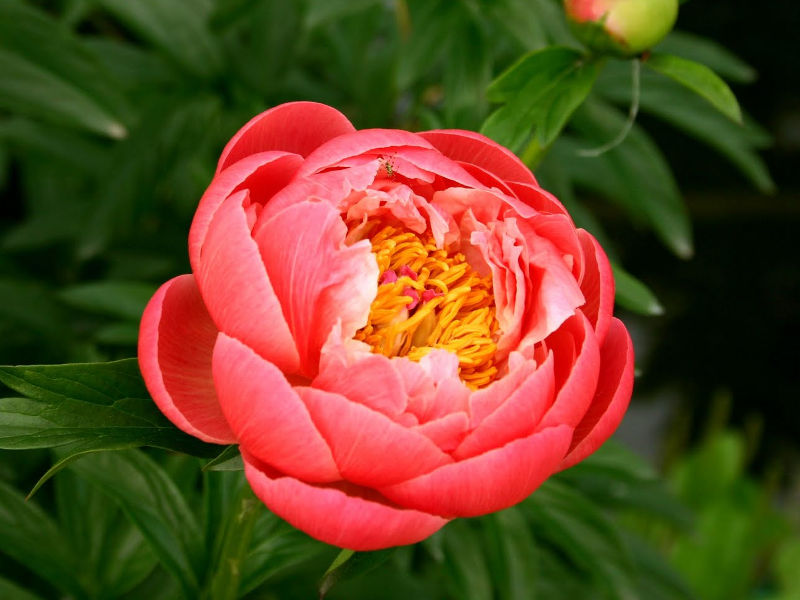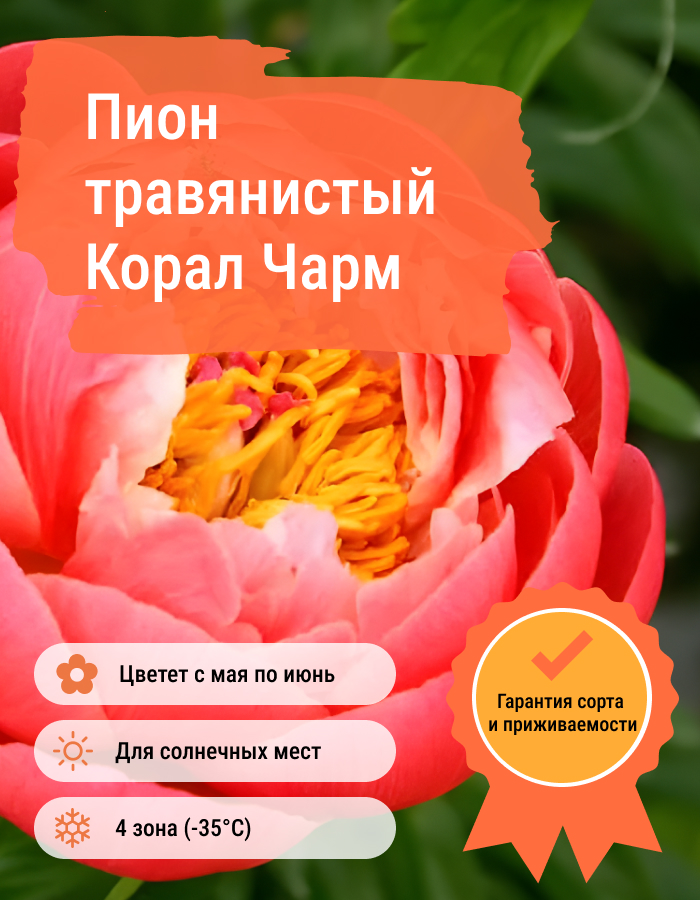 Рассада пиона молочноцветкового Корал Чарм (Coral Charm) представляет собой прекрасное садовое растение, которое привлекает внимание густыми кустами и нежными бутонами. Цветок довольно крупный, полумахровый, с несколькими рядами лепестков кораллово-розовых лепестков. Серединку бутона украшают многочисленные рыжие тычинки. Цветет довольно долго, но оттенок становится светлее. Прочные тонкие стебли с сочной зеленой листвой делают этот сорт прекрасным для срезки. Семена пригодны для получения сеянцев. Пион молочноцветковый Корал Чарм хорошо переносит зимовку в открытом грунте.