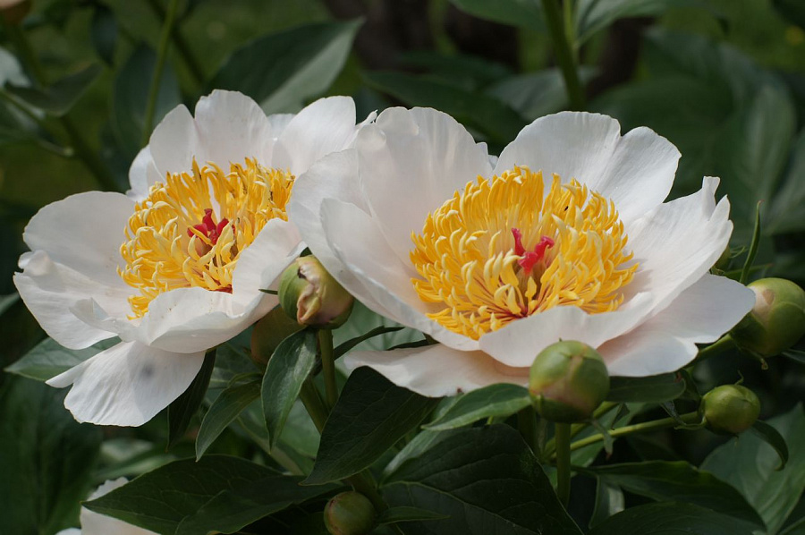 Луковицы пиона травянистого Реквием ― межвидовой гибрид, который был выведен американскими селекционерами в 1941 году. Куст, достигающий в высоту 85 сантиметров, сохраняет декоративность на протяжении всего сезона. На прямых стеблях распускаются простые белоснежные цветы с легким светло-розовым оттенком. Лепестки имеют прекрасную текстуру, как будто изготовлены из воска. Пестики желто-зеленого цвета имеют опрятные розовые рыльца. С цветами эффектно контрастируют очень крупные глянцевые листья насыщенного зеленого цвета. Сорт со средне-ранним и очень обильным цветением порадует прекрасными цветами в мае.