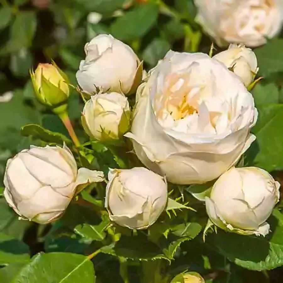 Настоящая жемчужина этой коллекции, эта нежная роза кремово-белого цвета порадует вас своим очарованием. Идеально круглые бутоны цветов, отдельно стоящие или в соцветиях, обладают сладким ароматом и долго стоят в вазе. Куст высотой 60-70 см, компактный, с темно-зелеными листьями. Сорт идеально подходит для посадки в задней части бордюра в сочетании с другими розами или среднерослыми многолетниками. В цветочных композициях он предпочитает компанию красных, фиолетовых и кремовых цветов, таких как анемон, сирень и маргаритки.