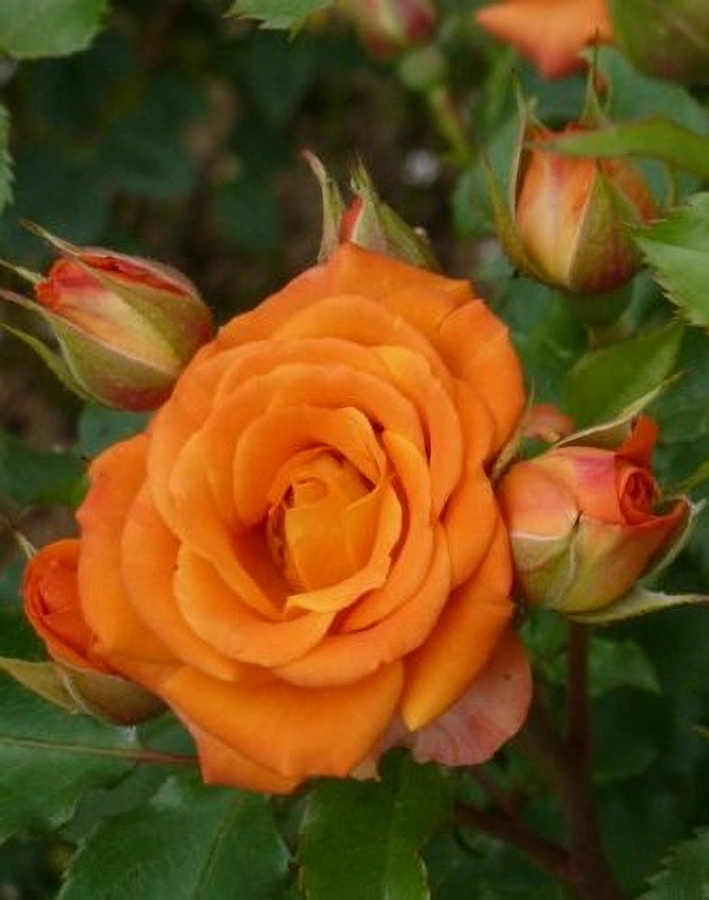 Роза миниатюрная Ориндж Бэбифлор - это настоящий яркий акцент в вашем саду! Ее оранжевые цветы привлекут внимание и подарят неповторимое настроение. Стебель данного растения один, а его высота может достигать до 60 см. Листья розы миниатюрной Ориндж Бэбифлор зеленые летом и желтые осенью, что создает красивый контраст.