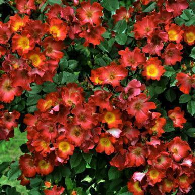 Саженцы розы «Коктейль» (Cocktail) относятся к устойчивым перед морозами, болезнями и вредителями сортам. Высаживают их на солнечные участки, защищенные от ветров. Почву дренируют. Время посадки саженцев розы «Коктейль» – май. Высота кустарника достигает до 2 метров. Ветви крупномера розы «Коктейль» длинные, с блестящими листочками. Цветочки в диаметре до 6 см, окрашены они в ярко-малиновый оттенок. Собираются они в соцветия до 6 штучек. Аромат не яркий, но приятный. Используют этот сорт цветов для создания высоких цветников, вертикального озеленения, создания живой изгороди.
