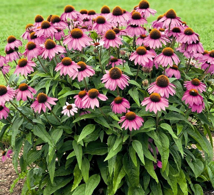 Семена рудбекии пурпурной розовой используют для создания смешанных посадок, украшения околоствольной площадки деревьев и заполнения пустых пространств сада. Крупные соцветия с темно-розовыми лепестками отлично смотрятся в букетах, поэтому нередко их выращивают на срезку. Взрослые кусты вырастают не более 70 см, поэтому их также можно высаживать вдоль стен дома и других садовых объектов.