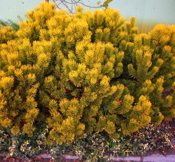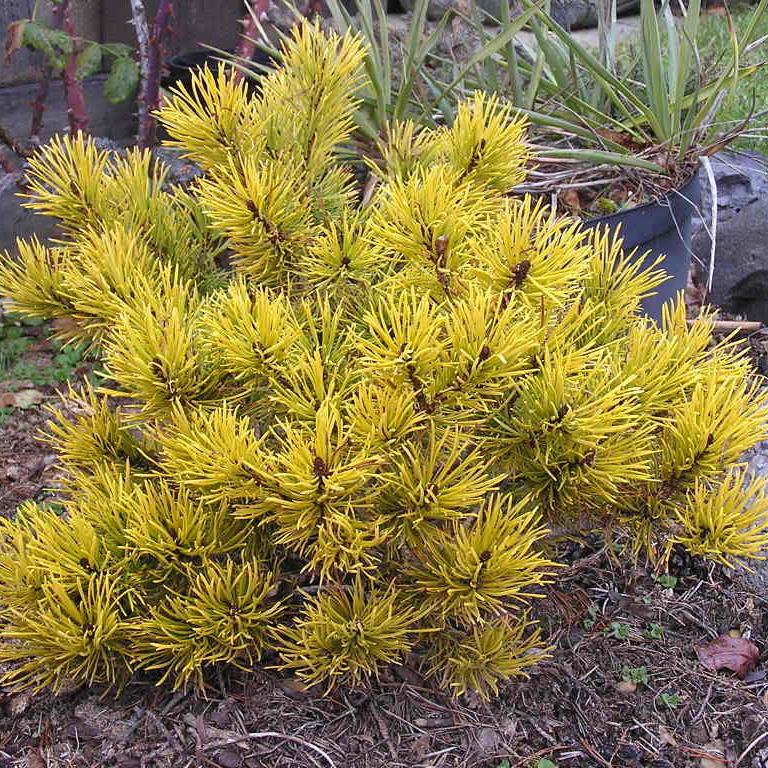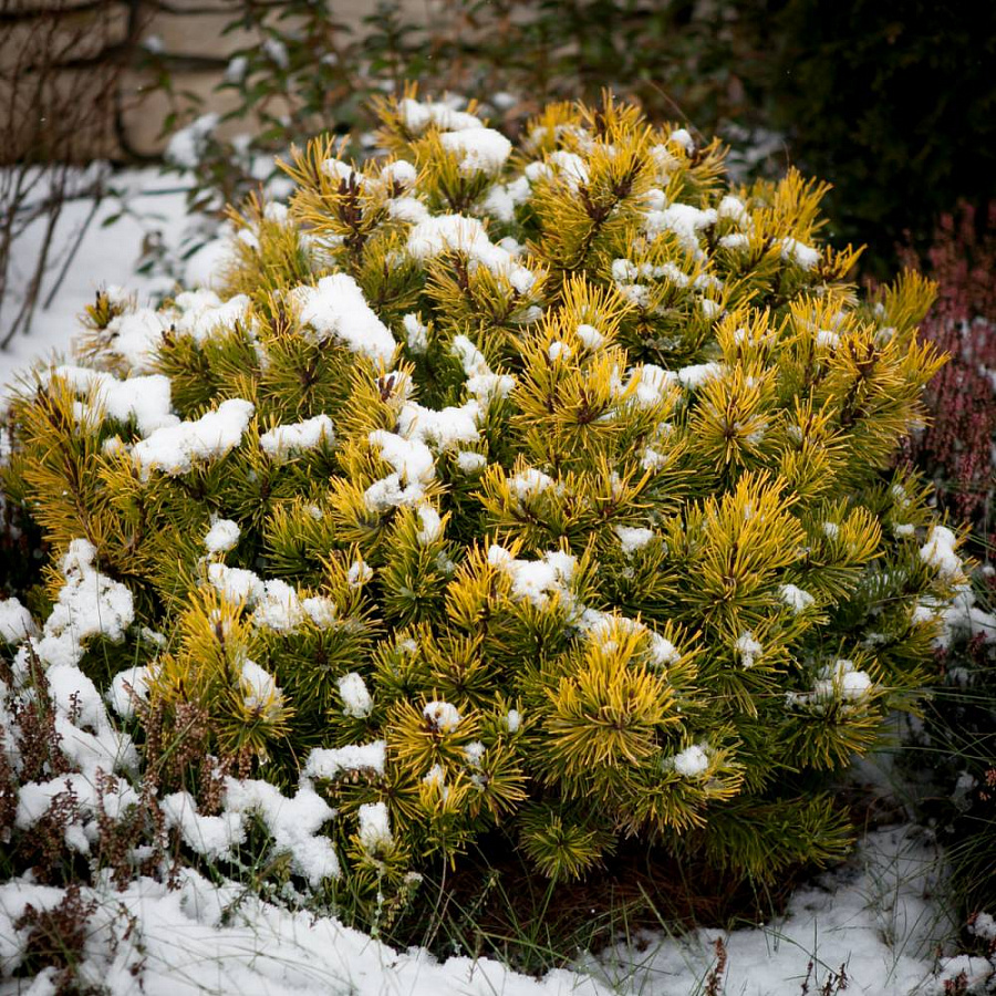 Саженцы сосны горной Винтер Голд (Winter Gold) — изумительный хамелеон растительного мира! Светло-зелёная летняя окраска к осени заменяется лимонно-жёлтой, которая зимой принимает золотисто-коричневый оттенок, откуда и название сорта (зимнее золото). Форма — шарообразная, рост — очень медленный (около 4 сантиметров в год), размер — высота до 1 м, диаметр до полутора метров. Любит солнце. Приживается на любом умеренно-сухом или влажном грунте, желателен дренаж. Сорт морозоустойчивый. Ввиду очень медленного роста возможна покупка многолетней сосны Винтер Голд (крупномера). Молодое растение может пострадать от зимних и ранних весенних солнечных ожогов — рекомендуется укрытие.