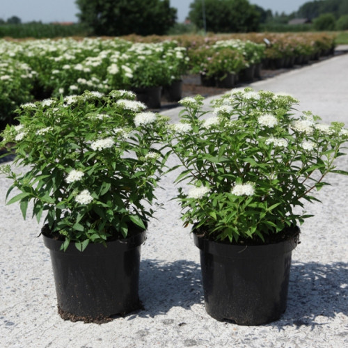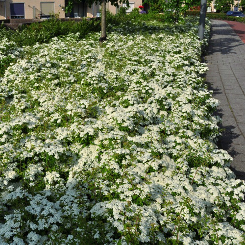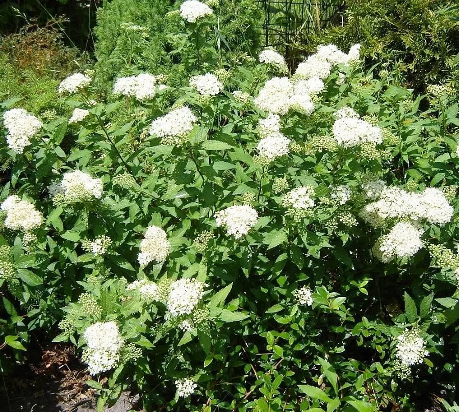 Саженцы японской спиреи Альбифлора (Albiflora) позволят без лишних усилий сделать ваш сад неповторимым. Этим очаровательным невысоким кустарником с пышными белыми соцветиями можно украсить искусственный водоем, альпийскую горку, рокарий или групповую посадку. Особенности крупномера: продолговатые светло-зеленые листья осенью становятся красно-оранжевыми; белые мелкие цветы собраны в щитковидные соцветия; диаметр соцветий – около 7 см. Неприхотливые саженцы спиреи Альбифлора будут отлично смотреться в сочетании с хвойными кустарниками и спиреями другой расцветки.