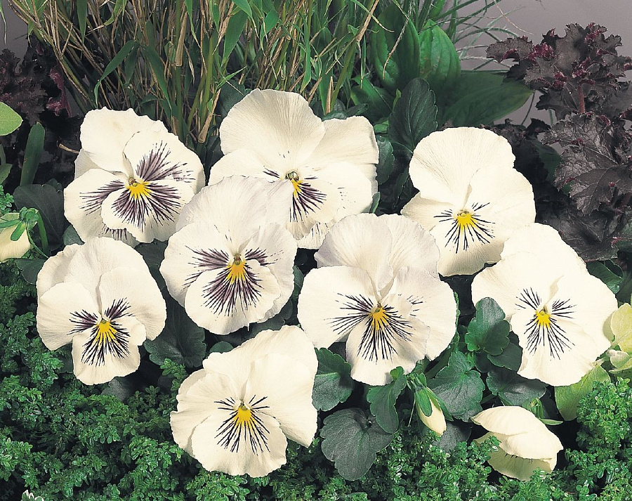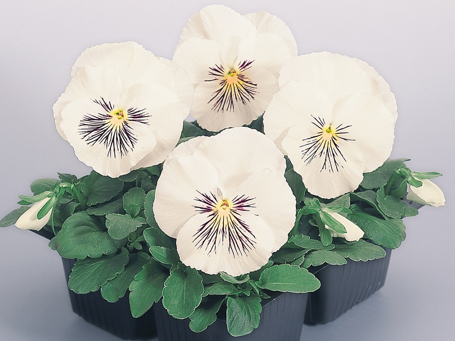 Виола крупноцветковая "Кетс Вайт" - это великолепное растение с белыми цветками, которое порадует вас своей изысканной красотой. Сорт этой виолы отличается высотой до 15-20 см и размером цветка 6-8 см, что делает его идеальным выбором для групповых посадок. Это растение предпочитает солнечные и полутенистые места, а также плодородные почвы.