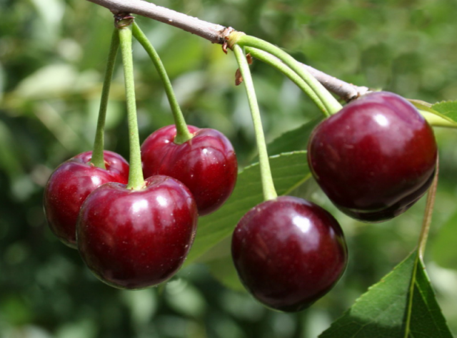 Саженцы вишни Жуковского – при правильном разведении дают качественные плоды. Также дерево не воспринимает различные заболевания при правильном уходе. Ягоды вишни привлекательные, довольно крупные, одна штука весит до 4 г, а некоторые достигают 6 – 7 г. По форме плоды овальные, похоже на сердце. Кожица их темная красная, а вкус кисло-сладкий. Плоды окончательно созревают примерно в середине июля. Сам процесс созревания всех ягод происходит одновременно. Спелые плоды осыпаться не будут. Плодоношение на дереве начинается только на 4 год и при правильном уходе всё это время первый и последующие урожаи будут обильными.